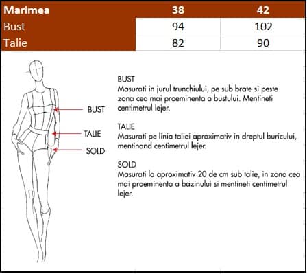 Pentru măsurători cât mai exacte, iți recomandăm să le realizezi cu un centimetru, purtând doar lenjerie intimă și un sutien fără burete. Pentru ajutor sau sfaturi, îți stăm oricând la dispoziție pe pagina noastră de facebook.