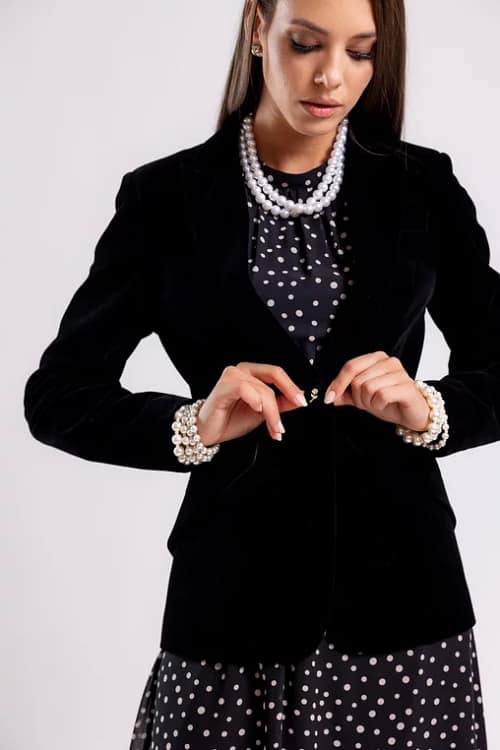 Sacou Caramel cambrat din catifea negru