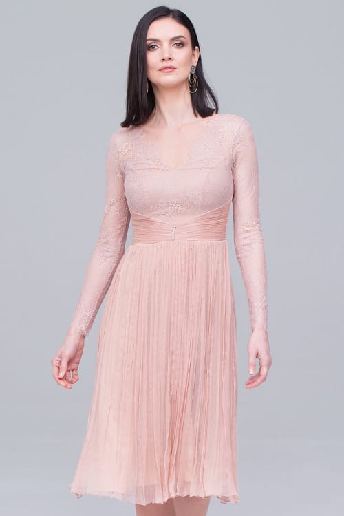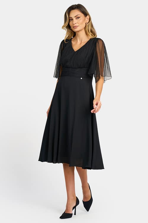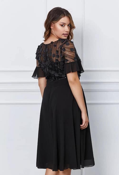 Decolteu rotund la baza gâtului cu inserții din tull și accesorii tip stras