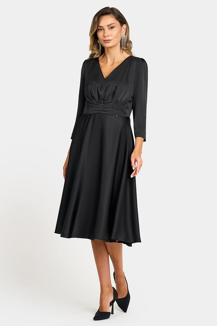 Cand te gandesti la un look glam, iti vin in minte rochiile in stil roman, mulate pe corp. Fii „femme fatale” la evenimentele mondene intr-o rochie din paiete degrade, ce iti va evidentia silueta. Fusta este una midi, mulata, cu slit pe picior. Poart-o cu sandale transparente sau bej pentru un efect de poveste.