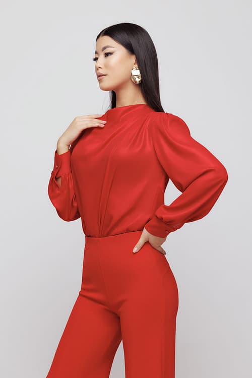 Modelul nostru are 1.75 m înalțime, bust 88 cm, talie 67 cm, șold 94 cm si poartă o bluză marimea 36.